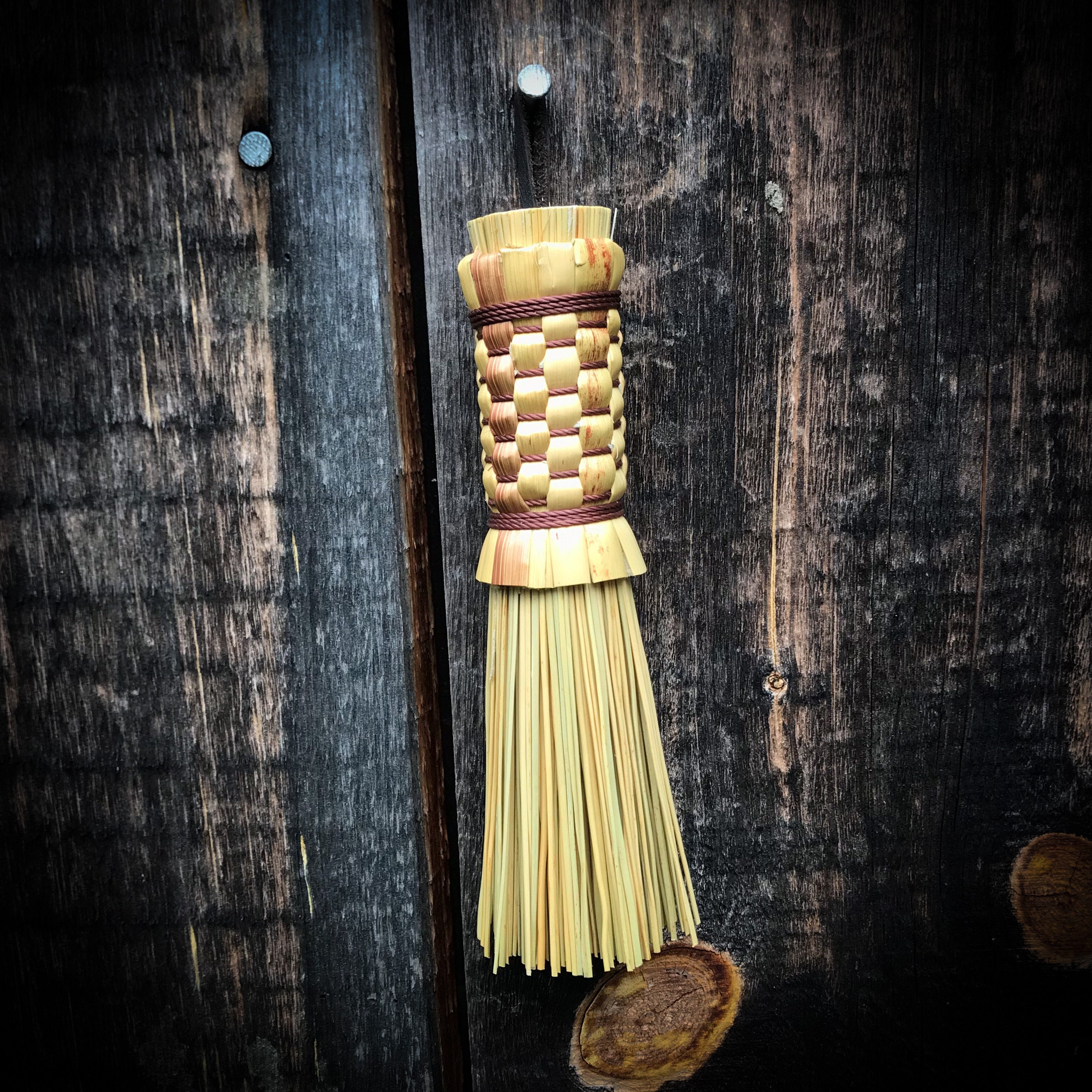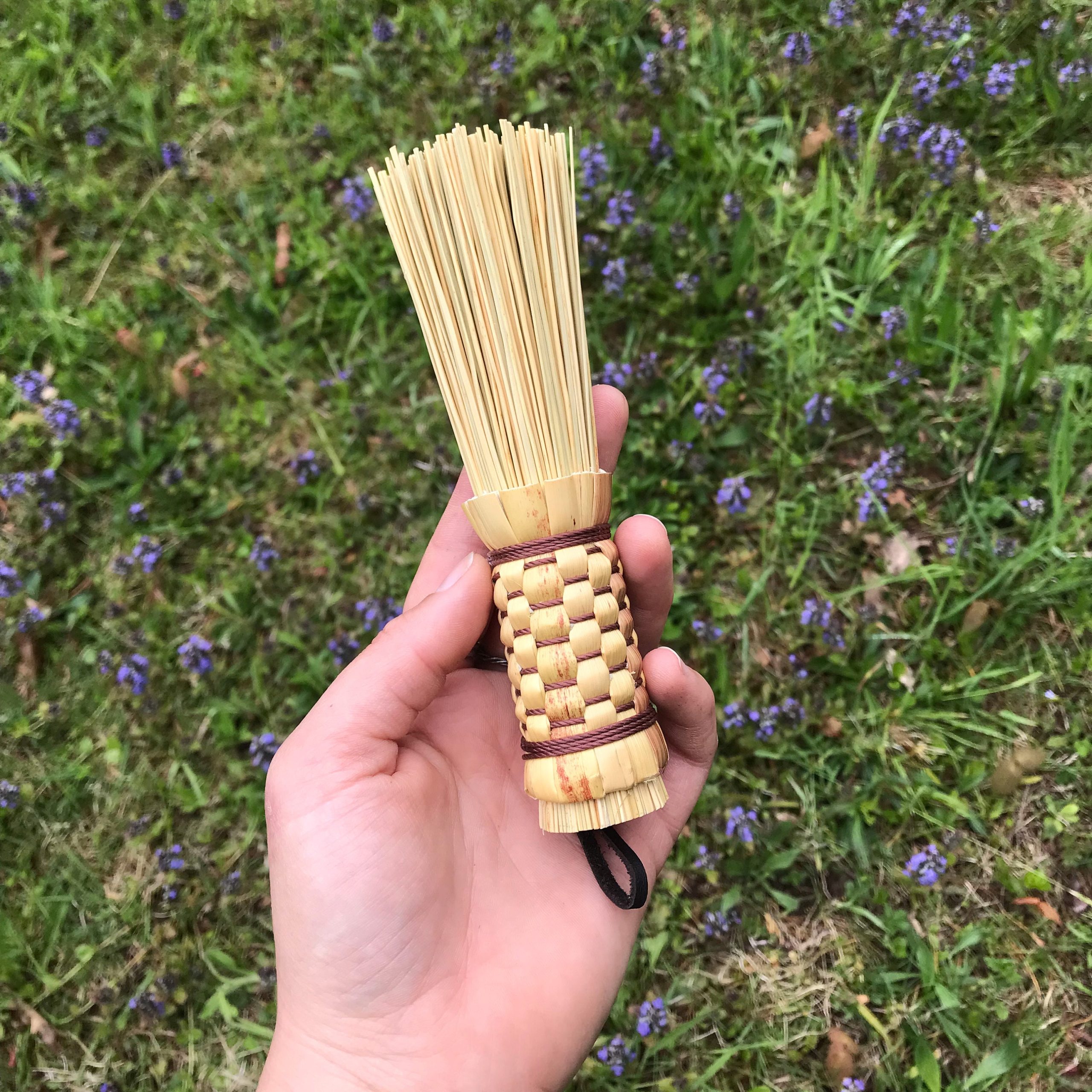 Cake tester brooms are a fun and unique kitchen tool handmade in the traditional Appalachian style. The plaited handle is made from Broomcorn grown here in our RootsStones&Bones gardens.