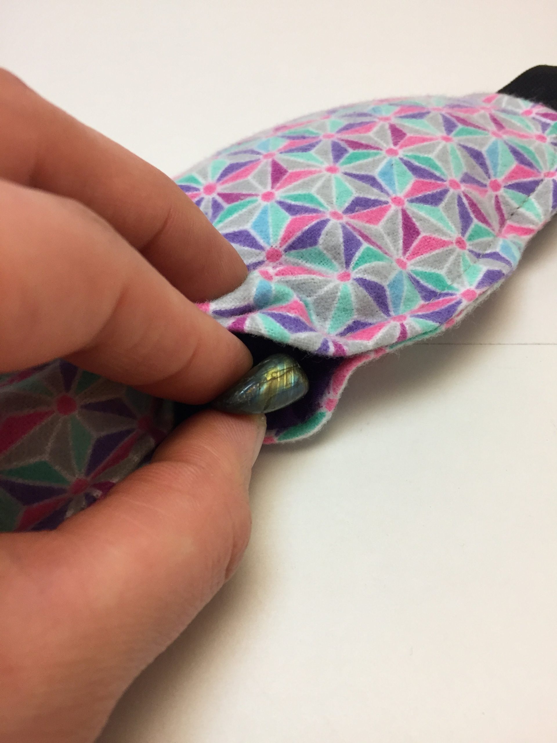 With this PDF digital download you will learn how to sew a RS&B hidden pocket Crystal Eye mask. Our step-by-step photo tutorial and PDF Pattern digital download is quick and easy to use. The Crystal Pocket Mask features a small hidden pocket sewn in at the third eye for a stone during meditation.