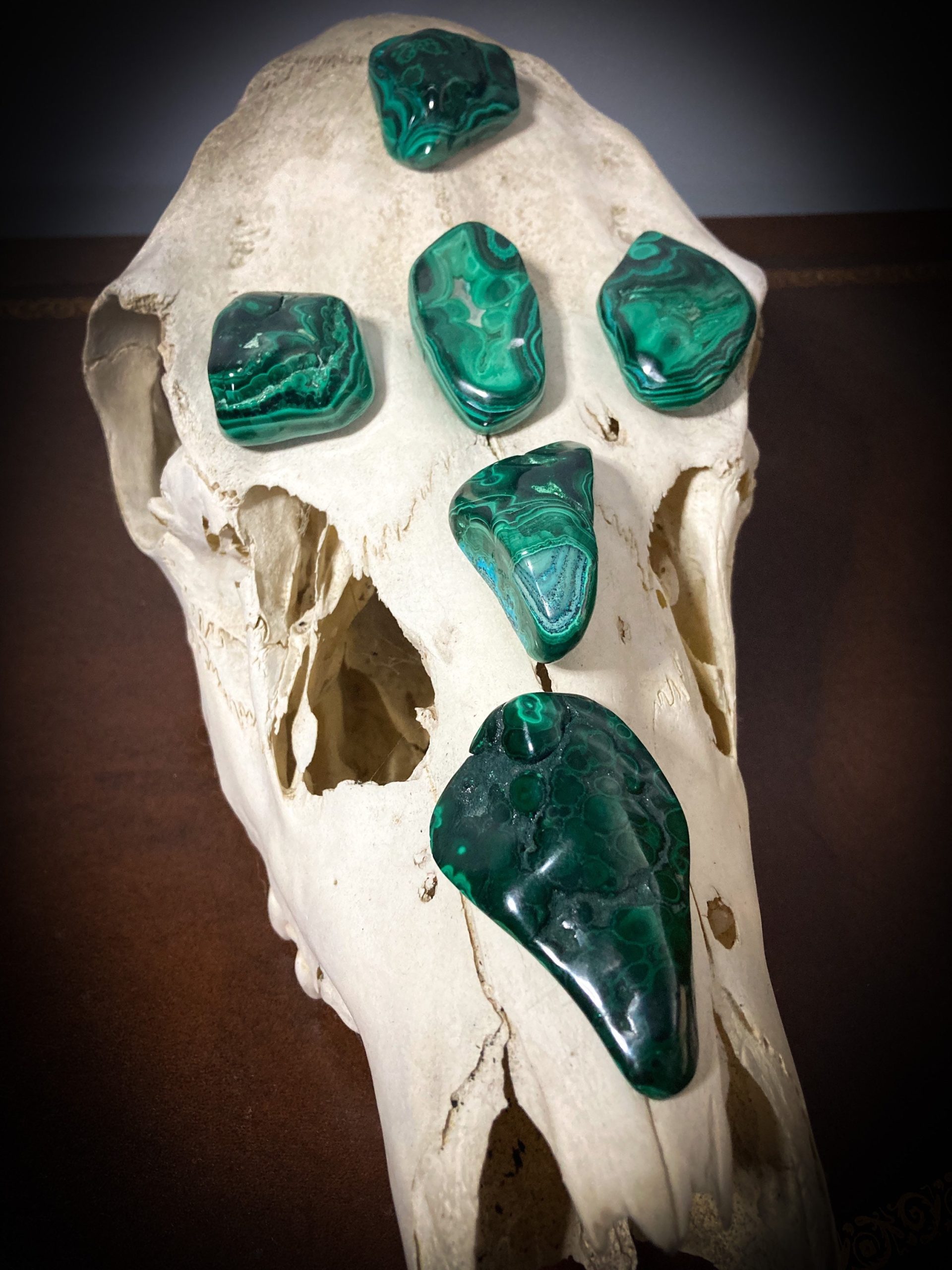 Malachite is a stone of transformation. Known as the "Midwifes stone" it is thought to help the muscles bones and joints, easing in the flow of labor.