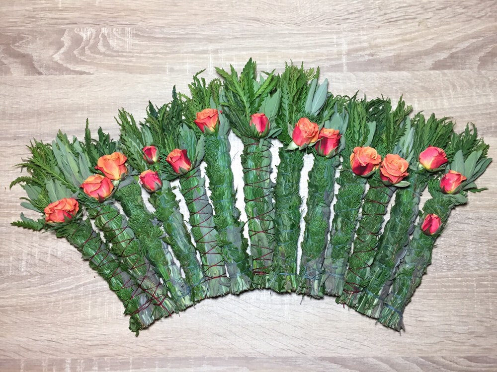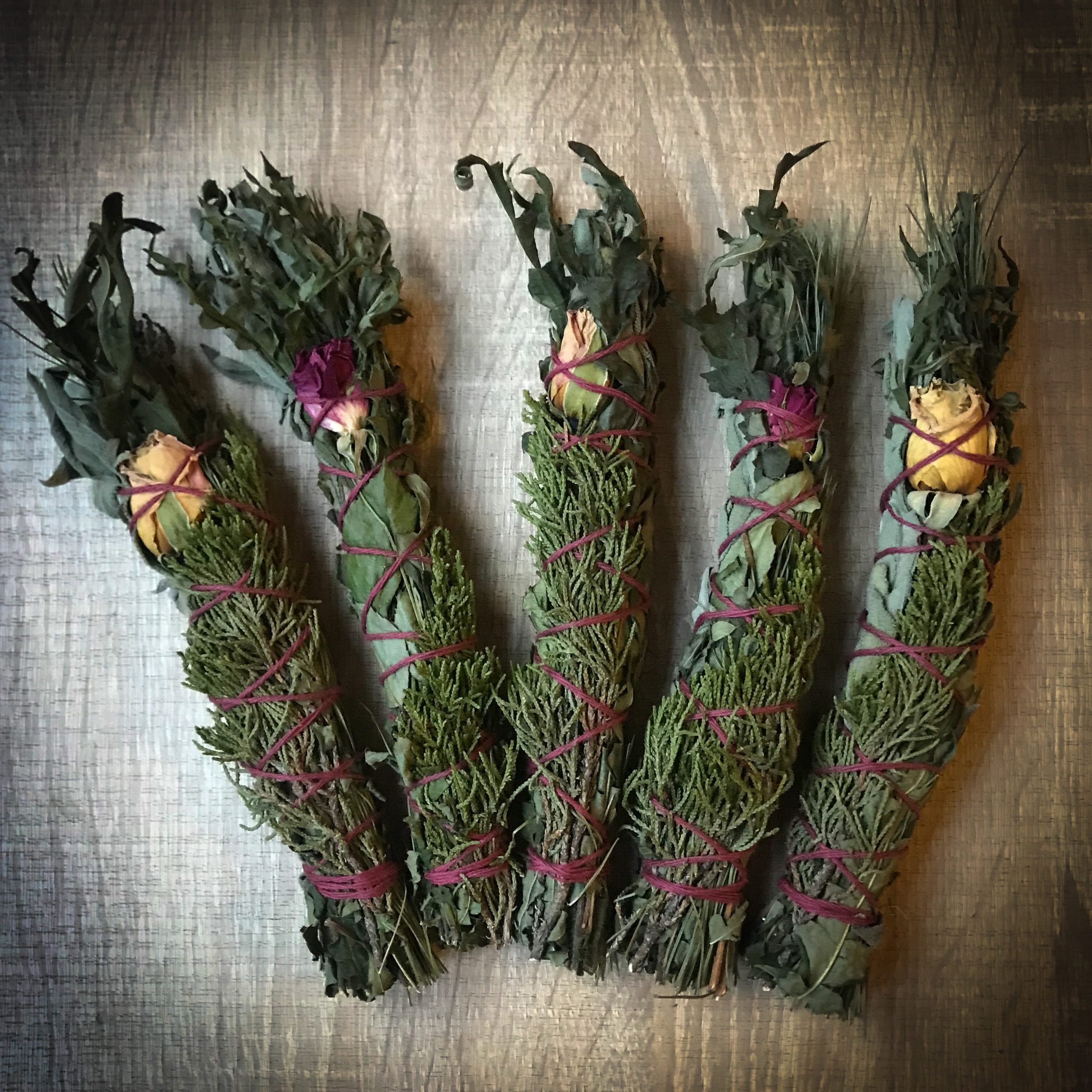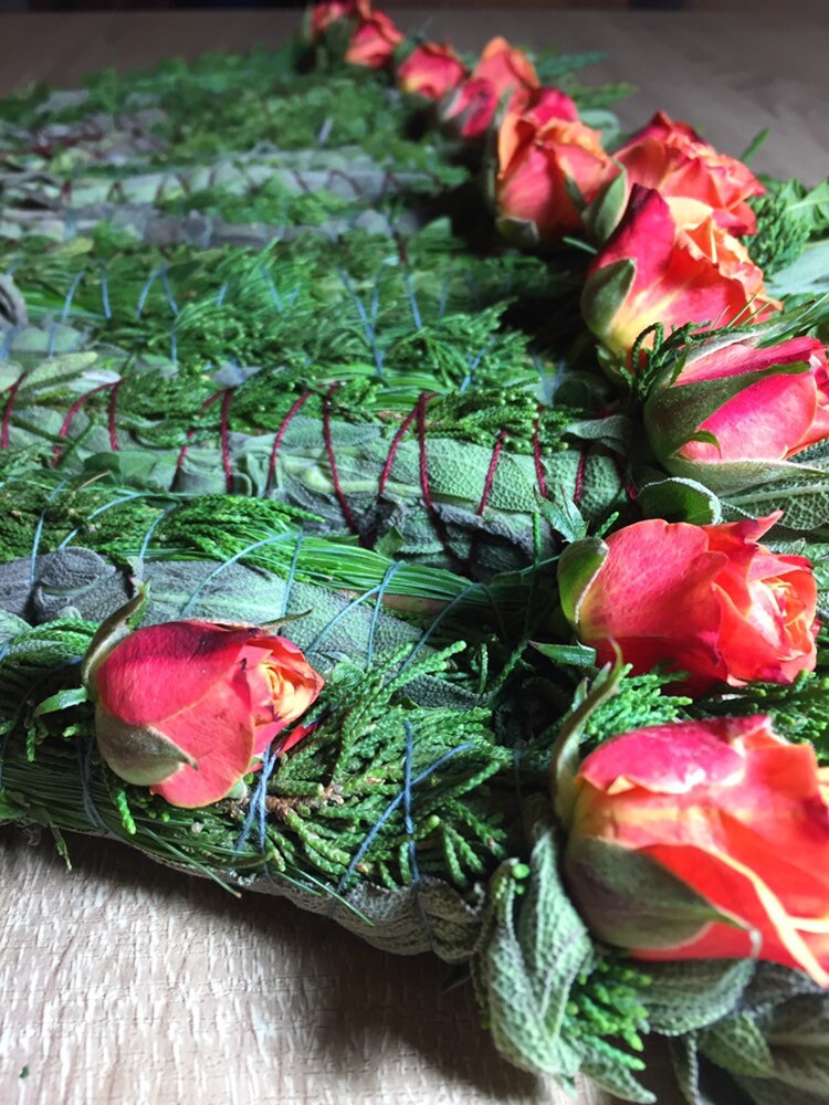 -Beautiful bundle of Sage, Cedar, Red Pine, Sweet Fern and adorned with Rose.